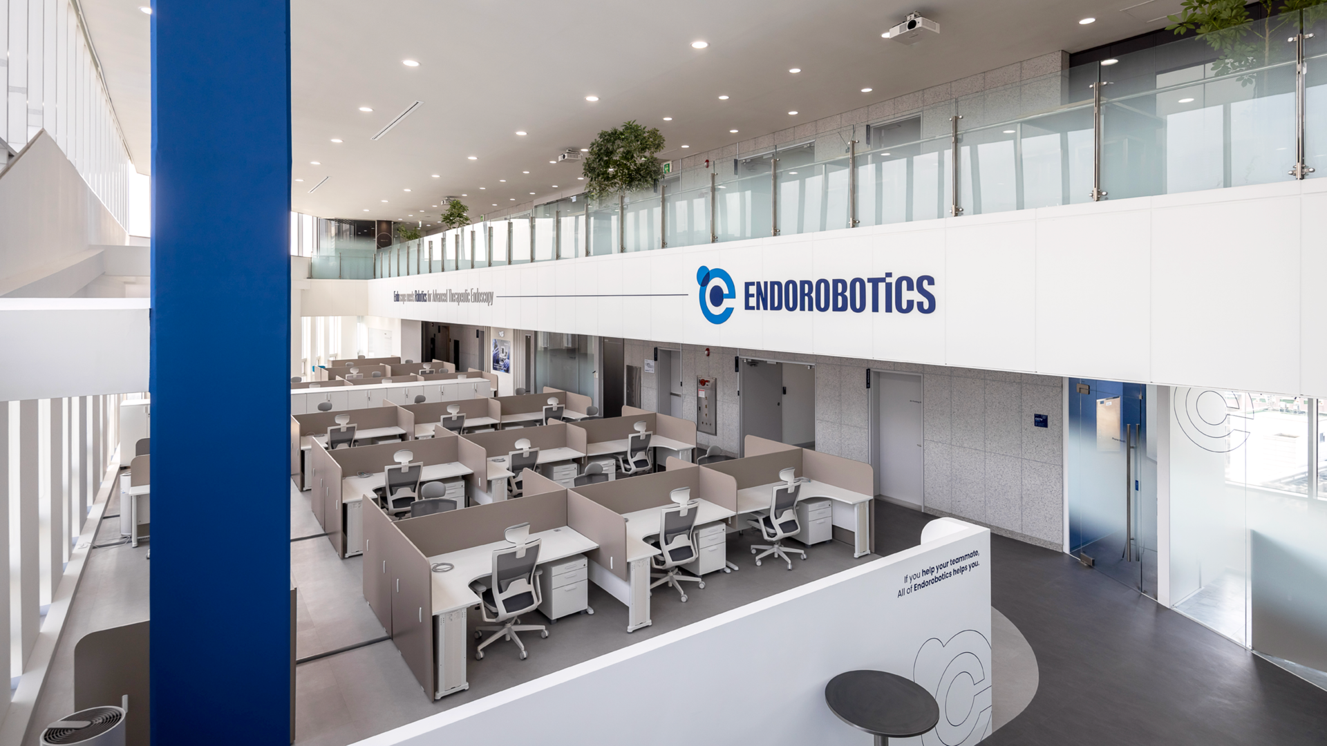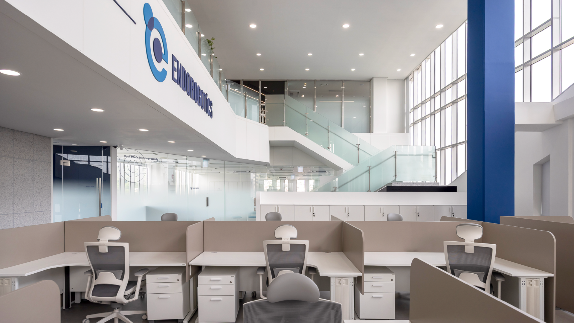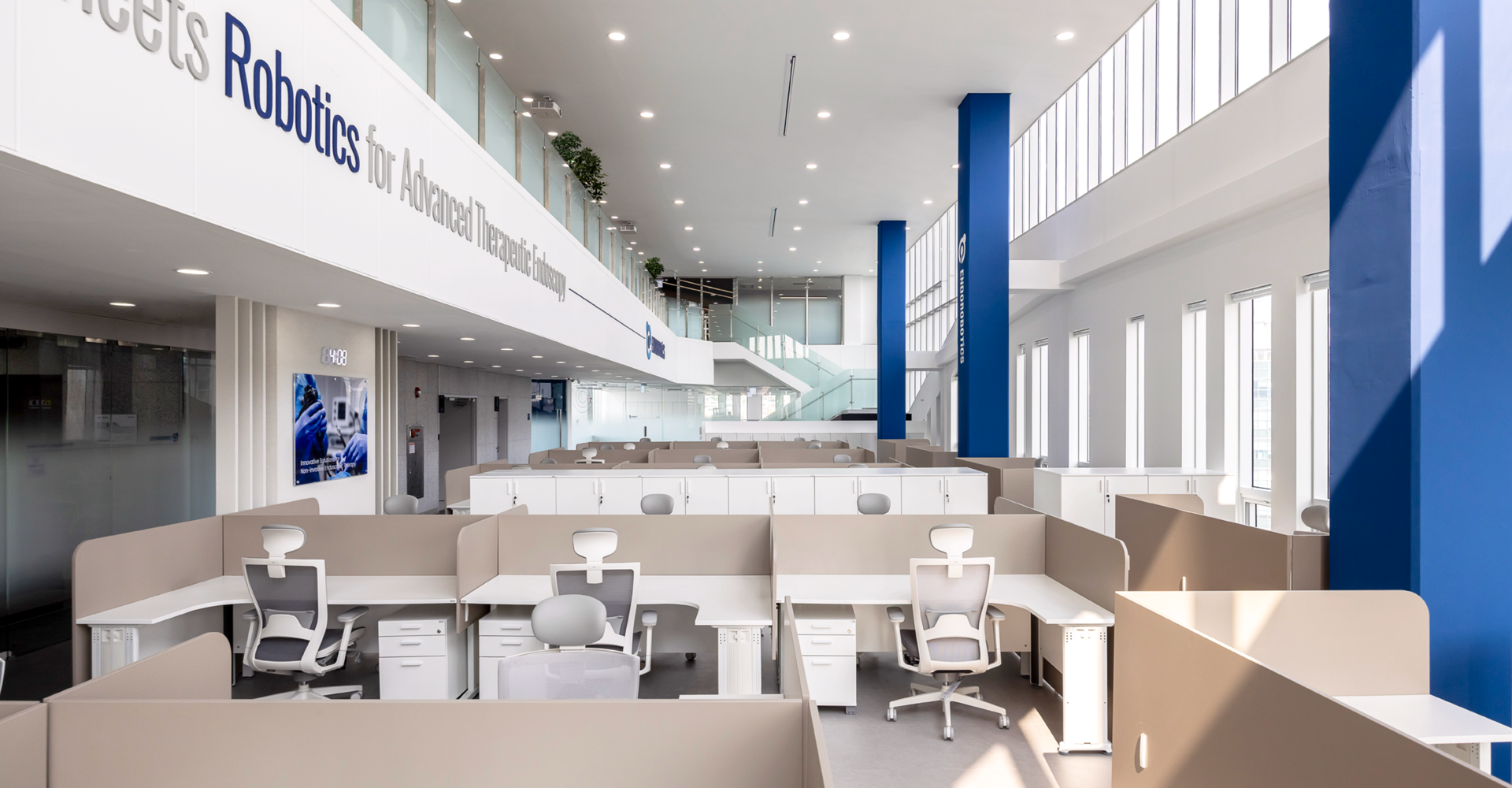 로봇공학 기반의 첨단 의료기술을 개발하는 혁신적인 기업의 아이덴티티를 담은 이번 공간은,