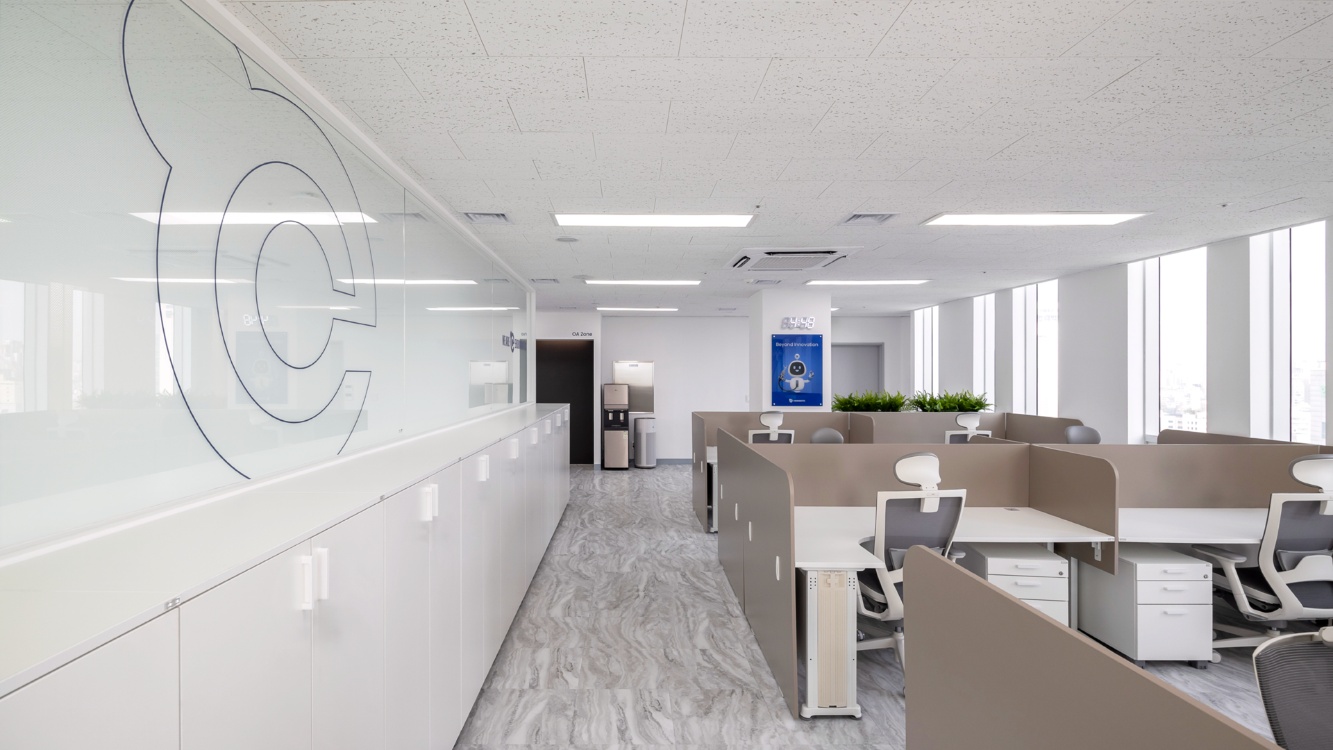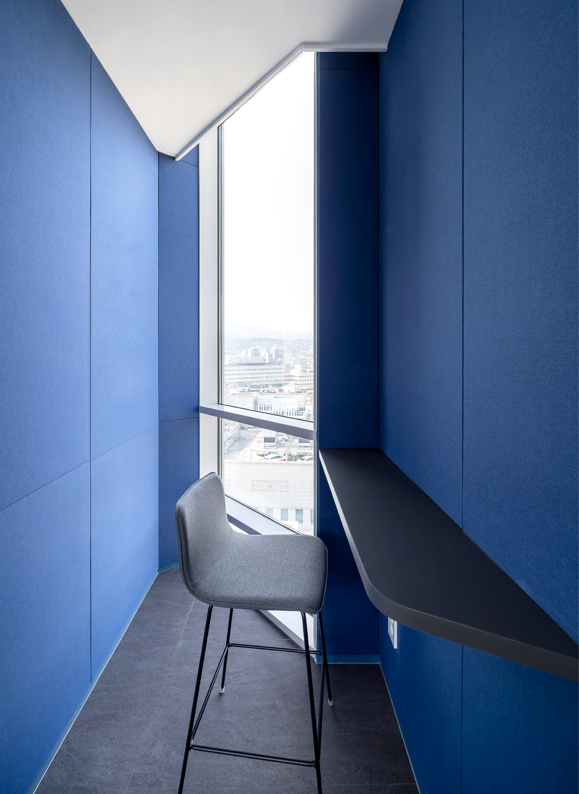 큰 구조 변경없이, 가구 배치와 아이덴티티 그래픽 요소 등을 통해 메인 오피스와 일관된 디자인 톤&매너를 유지했습니다.