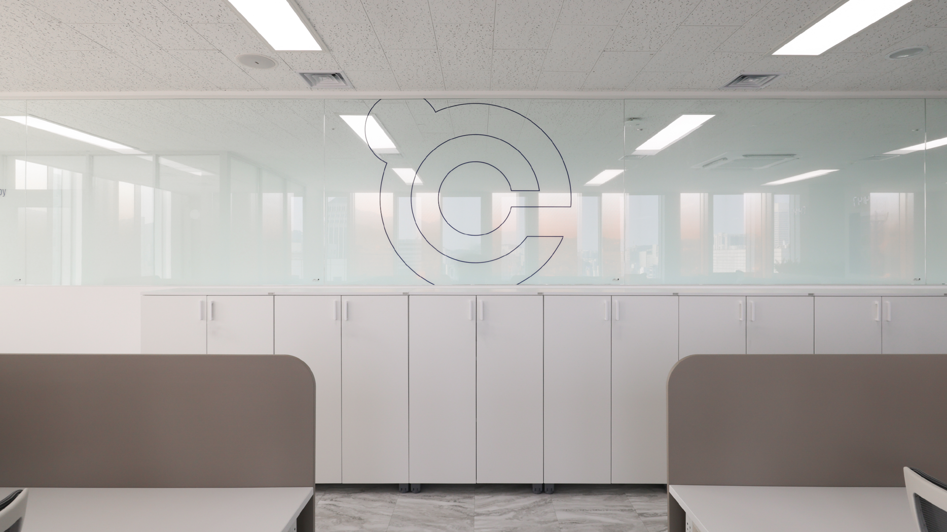 아이보리톤의 고급스러운 텍스처 도장과 금속 로고 사이니지를 적용하여 기업의 정체성을 자연스럽게 표현하는 이미지월 기능을 수행하는 동시에, 내부의 시야를 자연스럽게 차단해 업무 효율과 집중도를 함께 확보했습니다.