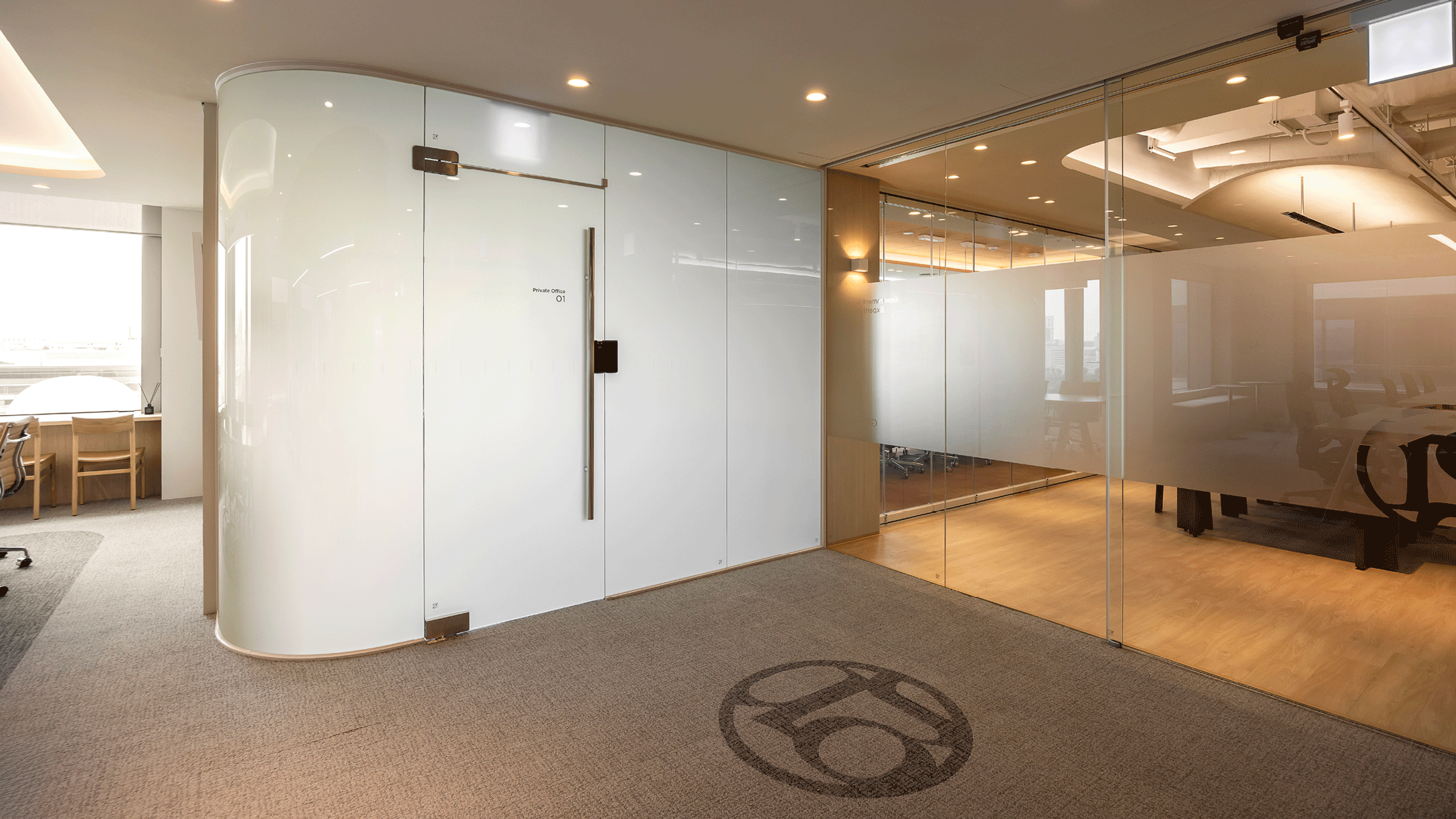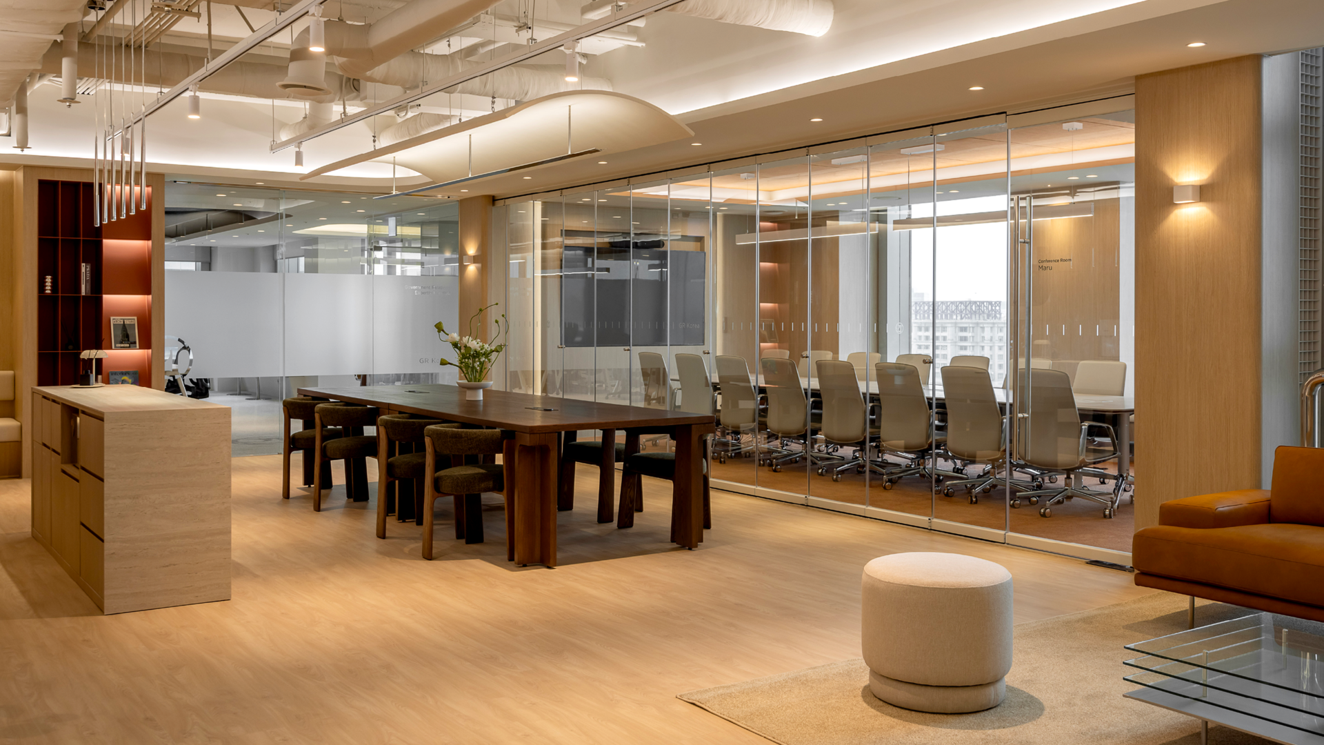 또한, 스마트 글라스(PDLC)를 적용해 VIP 미팅이나 업무 시 프라이빗한 공간의 오피스가 될 수 있도록 했습니다.