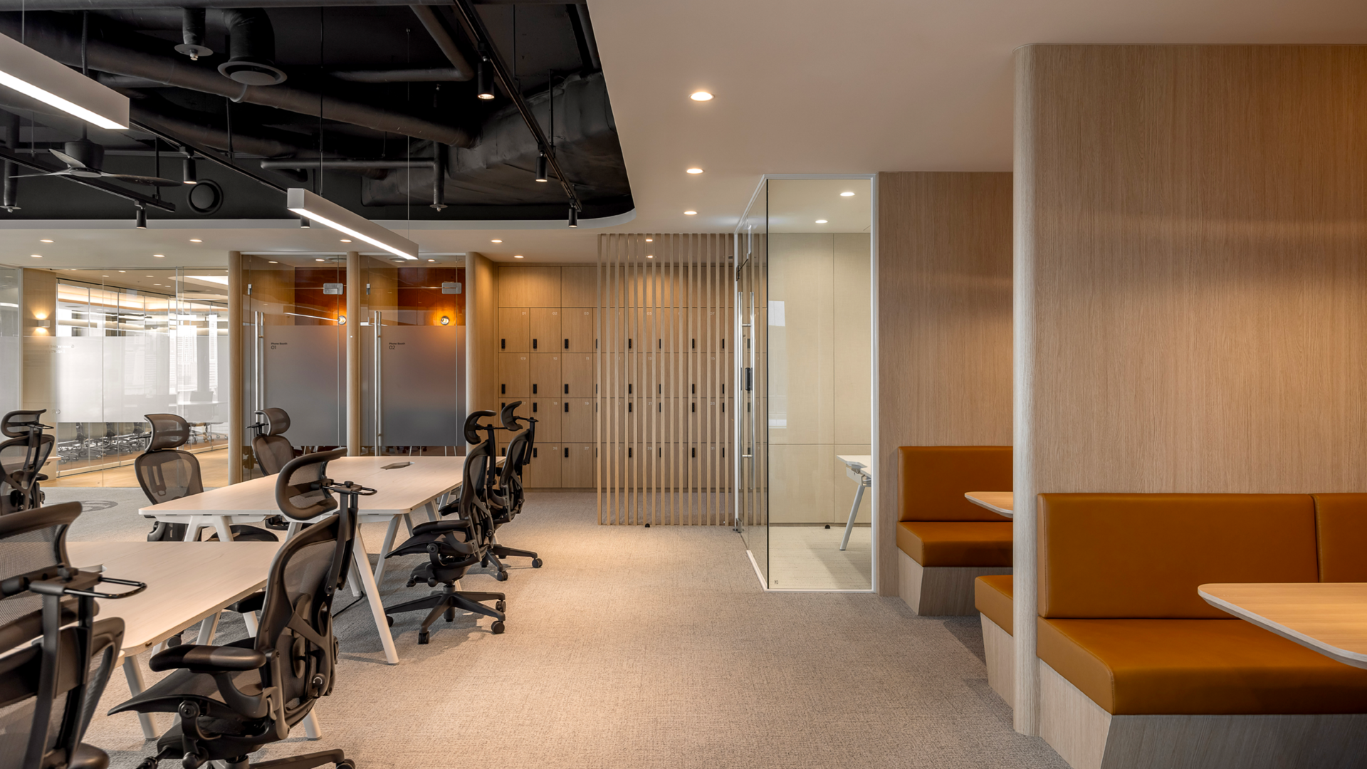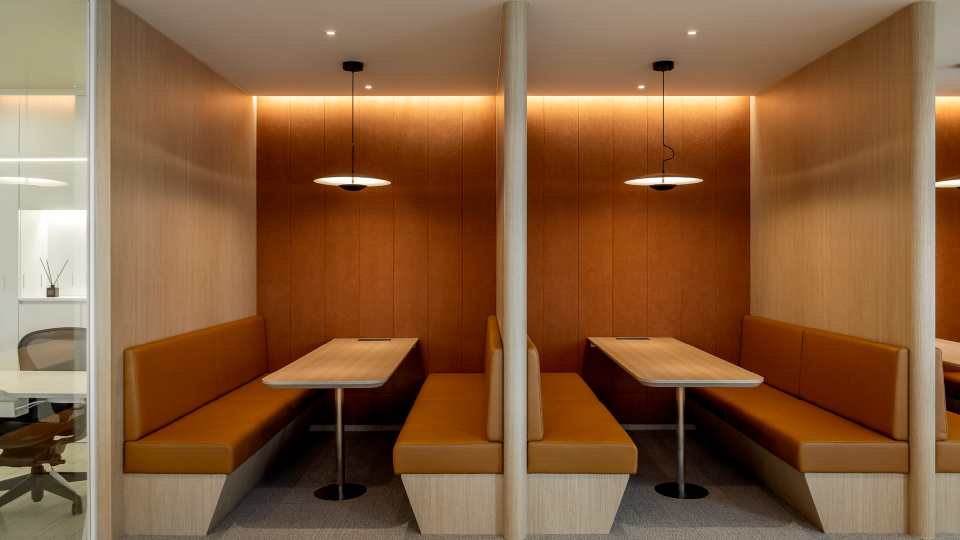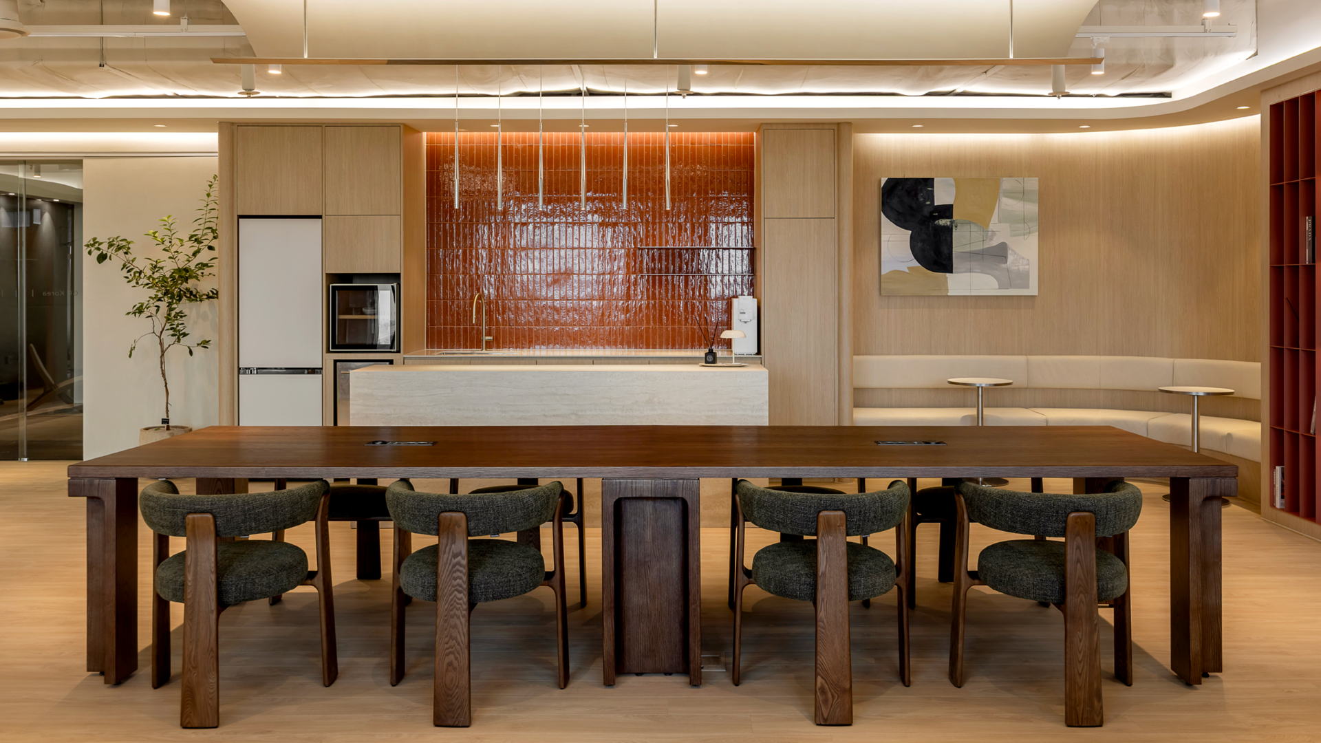 포커스 존의 경우는 회의공간의 디자인 톤&매너를 반영한 앰버 브라운 컬러를 적용해 시각적으로도 포인트가 될 수 있는 공간으로 제안했습니다.